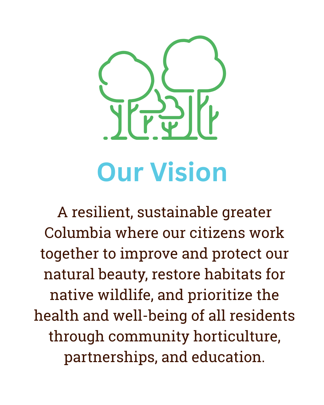 Columbia Green is a 501 3 c nonprofit established in 1984. We are on a mission to enhance the quality of life for all who live and work in greater Columbia..
